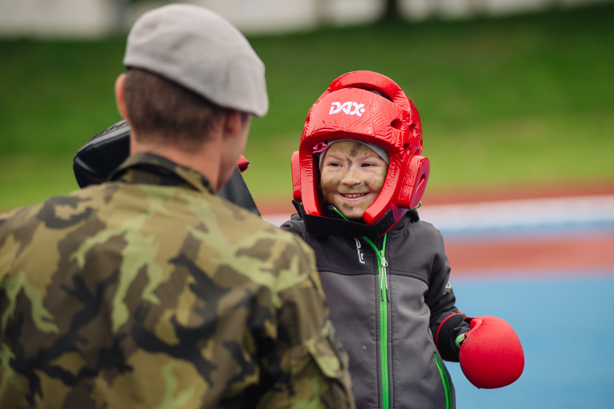Největším lákadlem, který byl po celou dobu trvání akce v přetrvávajícím obležení dětí různého věku, byl jednoznačně trénink v boxu. Na stanovišti se děti vybavily boxerskými chrániči a naplno využily příležitost trénovat společně s vojáky praporu údery a kopy do boxovacího pytle či boxerských lapů.